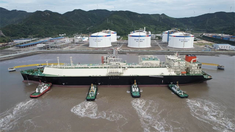 近日,在中国海油宁波“绿能港”LNG接收站,我国迄今为止最大规模LNG运输船建造工程——中国海油中长期FOB资源配套LNG运输船项目的首制船“绿能瀛”号在0718海巡艇的护航下顺利抵达宁波“绿能港”,计划在港完成冷舱作业及返输后开启首航。